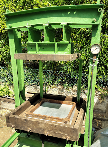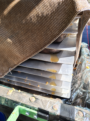 Wir hatten im Testlauf schon auf 100 bar getestet, nun – mit Äpfeln – lagen wir im Maximum bei 200bar, dann haben wir abgeschaltet. Tatsächlich reichen uns 150 bar um einen ziemlich trockenen Trester zu produzieren.