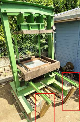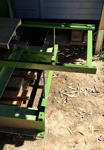 Schwieriger: Früher stand die Presse näher am Boden. Wir haben sie ja nun etwas höher (weil rückenschonender) aufgebaut. D.h. die vorderen Stützen der Schienen passen nicht mehr (weil zu kurz). Wenn man sie jetzt einfach verlängern würde, stünden sie etwas im Weg. Schwer verständlich? Wait …