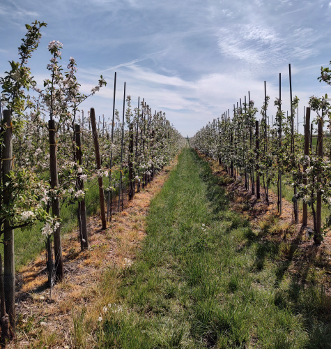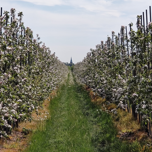 Für die volle Pracht der Apfelblüte waren wir 1-2 Wochen zu spät dran, aber es gab immer noch ein paar Streifen die jetzt erst in der Blüte standen. Das macht schon was her: Blüten bis zum Horizont!