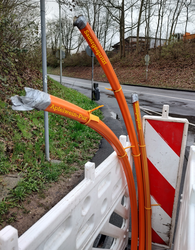 Habt’s ihr es auch schon gemerkt? Die Welt dreht sich immer schneller! Wenn in China der sprichwörtliche Sack Reis umfällt, steht es 10 Sekunden später in den Eilmeldungen der lokalen Presse. Diese Geschwindigkeit macht auch vor anderen Lebensbereichen keinen Halt, und so wird seit einiger Zeit am großflächigen Ausbau des Apfelwein-Netzes gearbeitet. Begonnen wurde damit in Niederhöchstadt: Überall sieht man seit Monaten emsige Arbeiter die Straße aufreißen und die orangefarbenen Leerrohre verlegen. Aus diesen Rohren wird bald Apfelwein fließen!