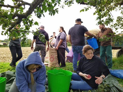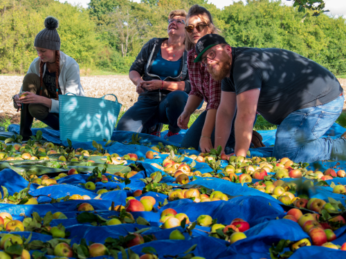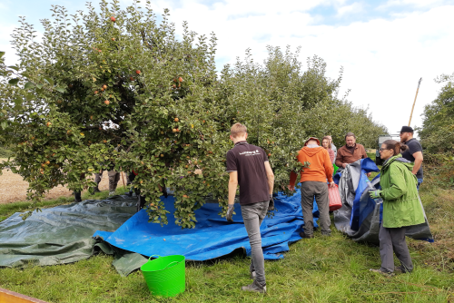 … ging es am Samstag, 2. Oktober, richtig zur Sache. Erfreulich viele Helfer haben sich dieses Jahr bei bestem Wetter zusammengefunden, um die Äpfel von unseren Wiesen zu ernten.