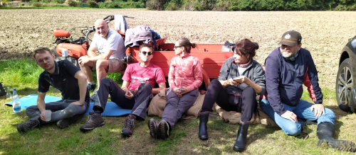 Es haben alle wieder ein wahnsinniges Tempo an der Tag gelegt, so dass zur Mittagspause schon weit mehr als die Hälfte erledigt war. Apropos Mittagspause: auch das wird immer professioneller. Am „Platz an der Quitte“ wurde eine Versorgungsstation aufgebaut mit allem was das Herz begehrt: Bratwurst im Brötchen, Kuchen, deftige Teilchen, Süßkram, Wasser, Schoppe, Becherovka …