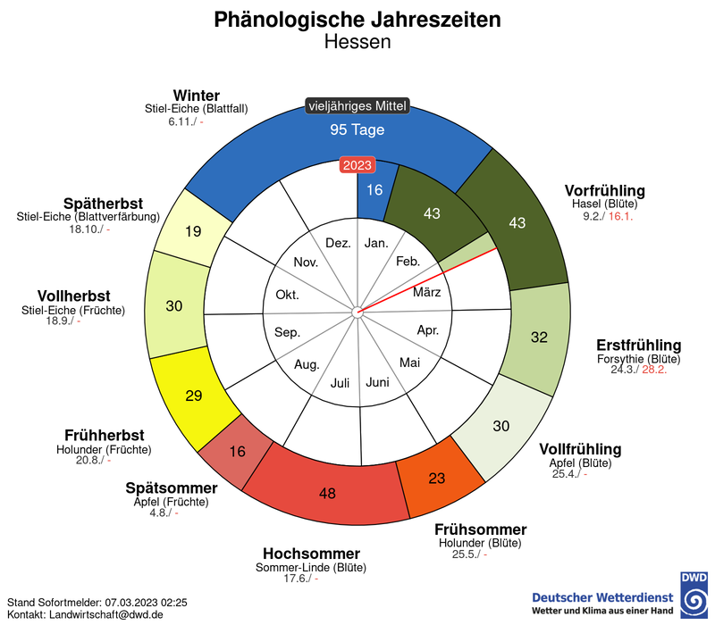Ich find’s mega interessant, denn so wird das subjektive Gefühl „alles wieder viel zu früh“ sehr gut visualisiert. Wer’s auch so interessant findet, der schaut nun (auch) regelmäßig beim DWD vorbei. Für die Nicht-Hessen der Leserschaft: Das Bundesland lässt sich auswählen. Viel Spaß und viele neue Erkenntnisse 🌞.