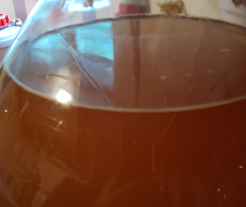 Als Testflüssigkeit diente der Streuobstmix 2020, ohne Quitte, ohne Speierling, ohne alles … also auch ohne Geschmack? Optisch gibt sich das Stöffsche trüb, aber das ist – wie wir schon wissen – dem Geschmack nicht abträglich: