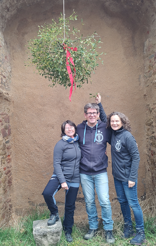 Eigentlich hatten wir gedacht mit dem Bohnappel sei die Keltersaison beendet – so kann man sich täuschen. Vor ein paar Wochen hat uns Christiane vom Landschaftspflegeverband Main-Taunus gefragt, ob wir Lust hätten mit der Ape beim Mistelfest dabei zu sein. Wir haben etwas leichtfertig JA gesagt – dann wurde es Ernst 😱