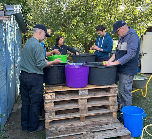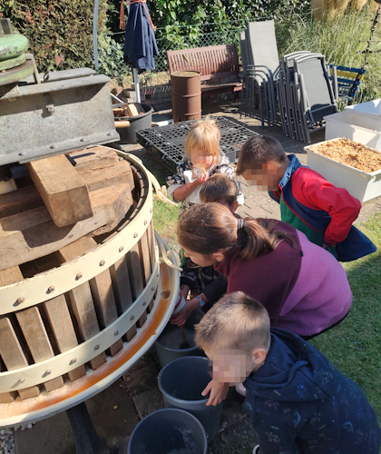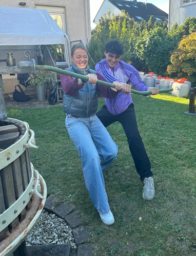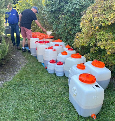 Nicht unerwähnt bleiben darf natürlich, dass das alles ohne die unglaubliche, hammermäßige, und vor allem weltbeste Keltergemeinschaft überhaupt gar nicht möglich wäre. 40+ Personen im Alter von 4 bis ‚etwas älter‘ waren dabei und haben engagiert geerntet, gewaschen, geschnibbelt, gemaischt und gepresst was das Zeug hält. Mega! Vielen, vielen Dank! 🥰 Wir werden gut auf’s Stöffsche aufpassen und euch auch im kommenden Jahr wieder mit leckerem Apfelwein der Marke „Heckstedter Krönchen“ verwöhnen – versprochen! 🤩