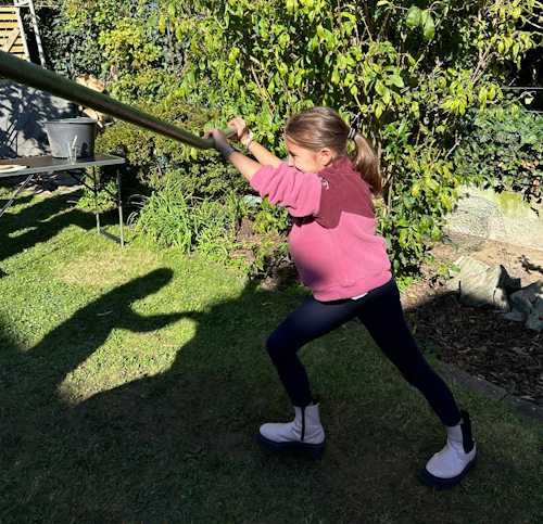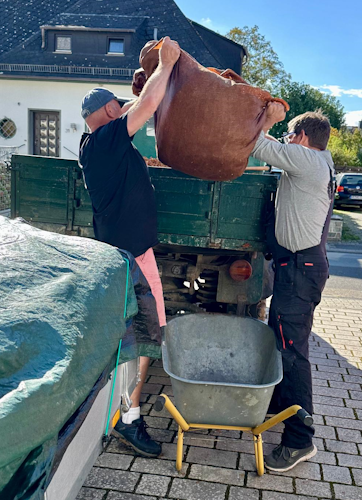 Von der „westlichen Koppel“ ging es zu den Rheinischen Bohnäpfeln, die nur darauf gewartet haben geschüttelt zu werden (Mega!)
