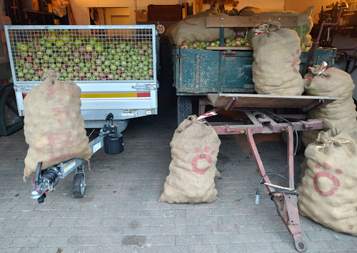 Aber würden die Äpfel reichen? Naja, auch die Pessimisten der Keltergemeinschaft (angeblich gibt es davon genau einen 😉) mussten beim Blick in die Garage zugeben, dass es „nicht so schlecht“ aussah (Jaaaa!).