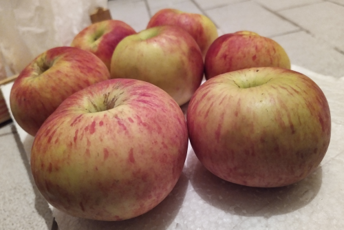Und hier geht der Ärger los: Mal heißt es, der Apfel käme aus Ontario/ Kanada, und mal heißt es, er käme aus dem Ontario County, und das wäre im Bundestaat New York/ USA. Naja, die dortigen Lokalpatrioten werden das wichtig finden, von hier aus gesehen ist es die gleiche Ecke 😉